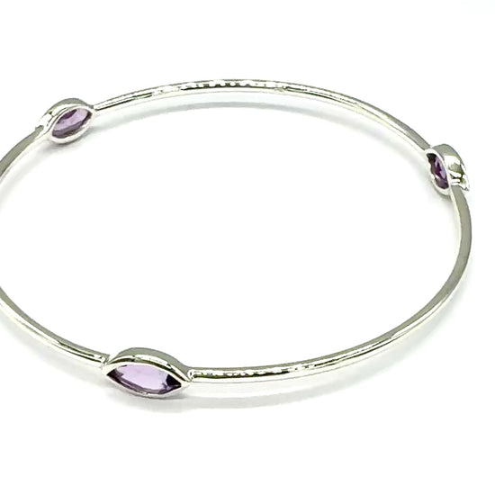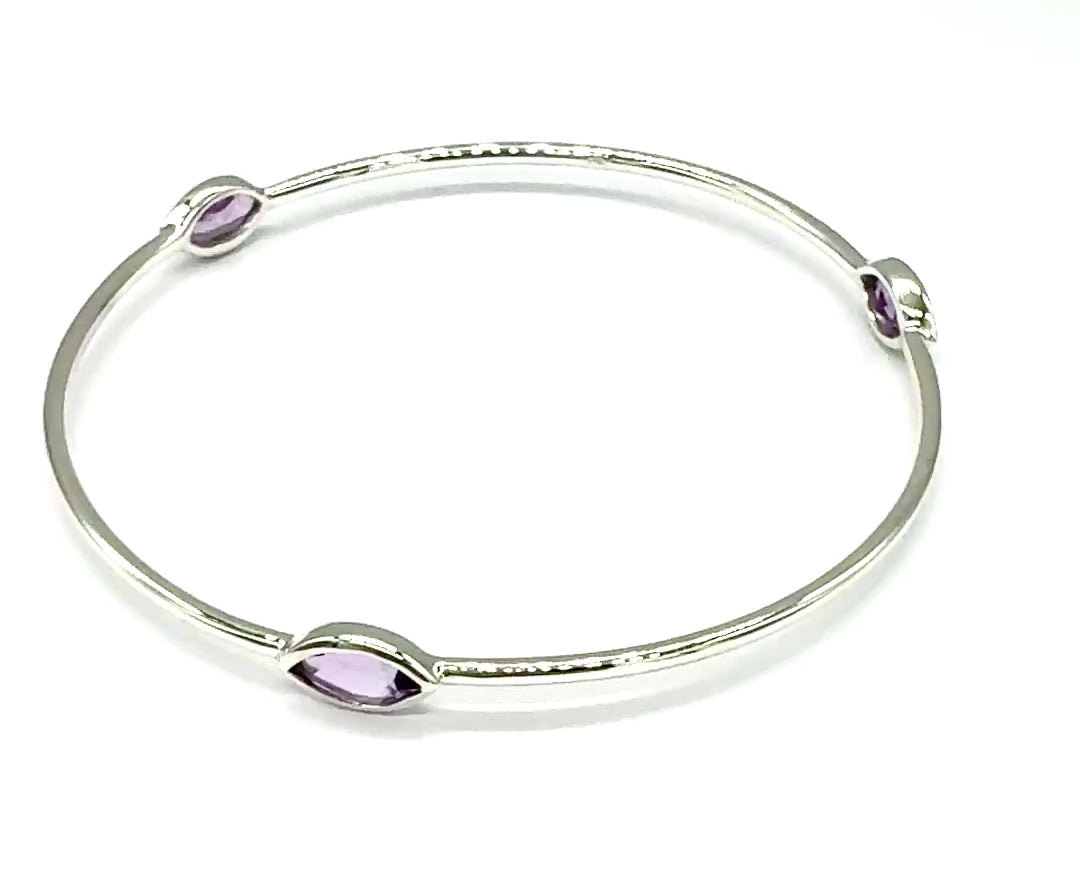 925 Sterling Silver Bangle Bracelet with Pink Purple Amethyst Stone