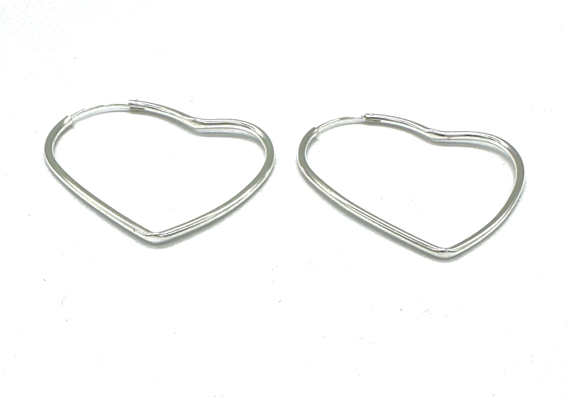 925 STERLING SILVER heart shaped HOOP earrings. They are made of 925 sterling silver and stamped with a 925 sterling silver mark. It means they are 92.5% silver and 7.5% copper to toughen the silver. I make them in two sizes; 30 mm and 40 mm diameter. They come in a pretty gift bag.