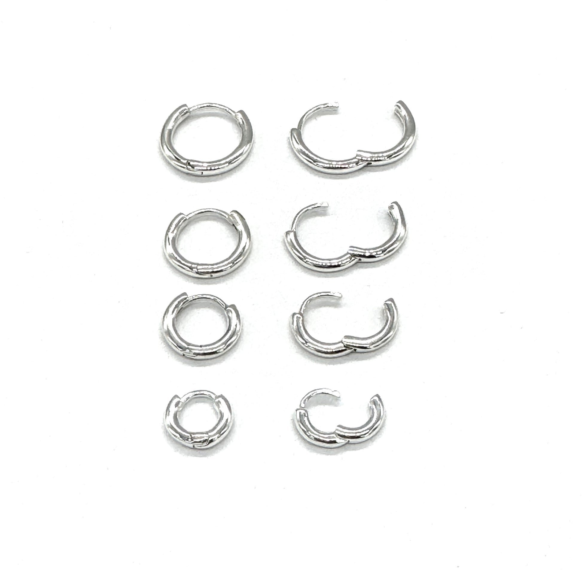 925 Sterling Silver Solid Small Hinged Sleeper Hoop Earrings 1.5, 2, 3 mm Thick Options