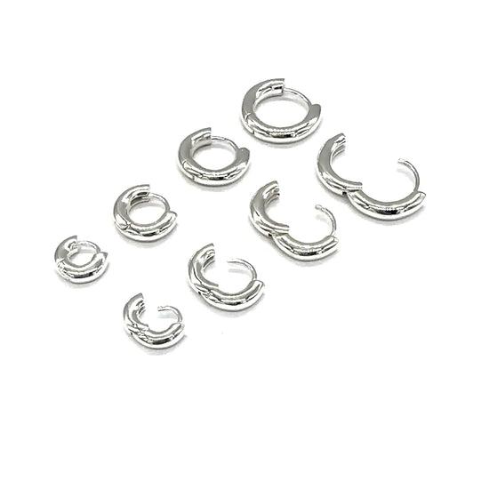 Genuine 925 STERLING SILVER Solid not hollow, 1.5, 2 or 3 mm thick, sleeper, small hinged hoop earrings. You can order them in size 10, 12, 14, 16 mm diameter. They come as pair. They are made of 925 sterling silver and come in a pretty gift bag.
